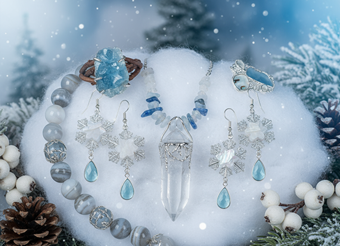 - Nature’s Palette: Featuring moonstone, quartz, and recycled silver — materials that echo winter’s purity and resilience.
